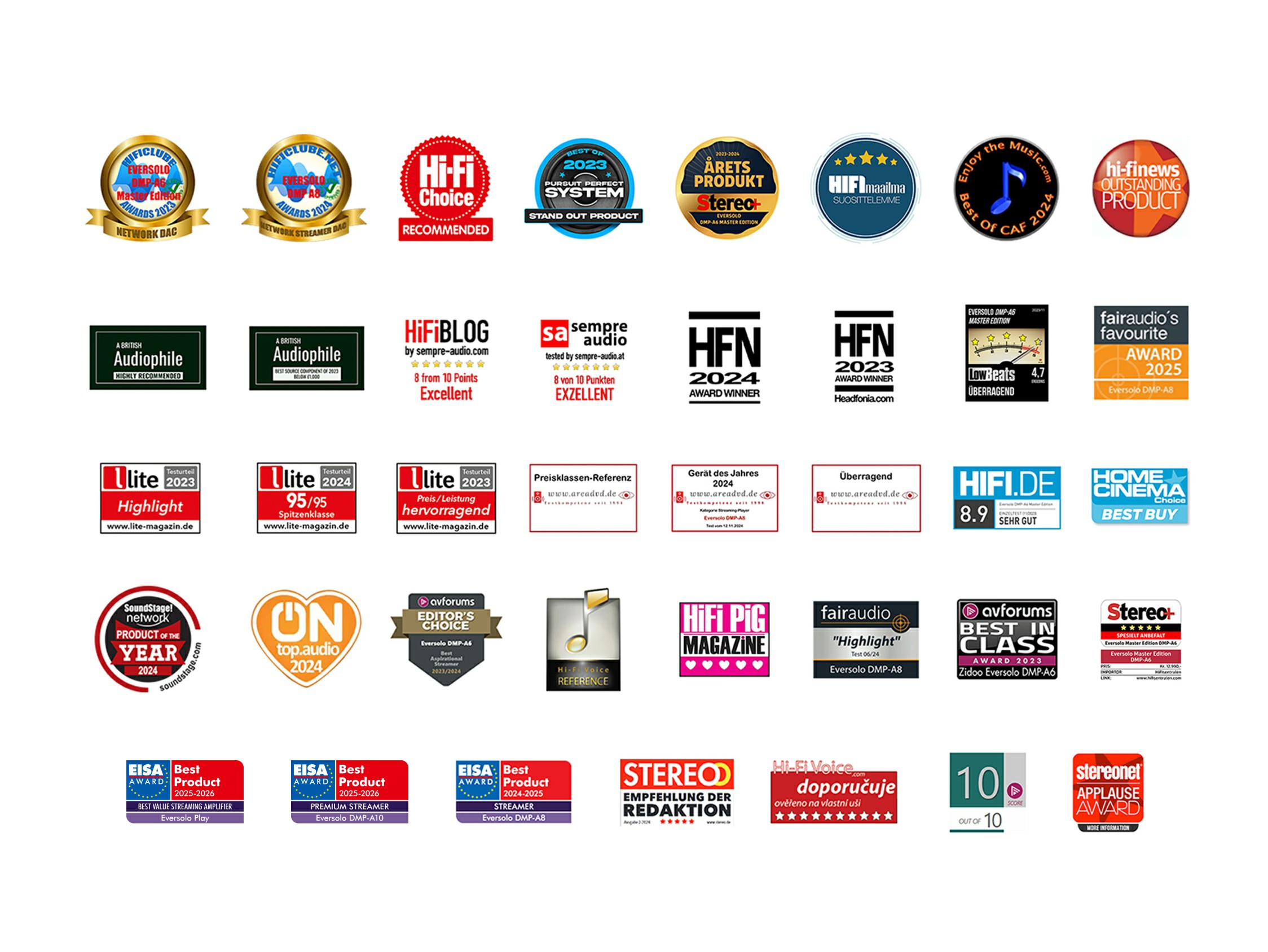 With its exceptional audio design and refined engineering aesthetics, Eversolo has gained international recognition. From unanimous praise by professional media worldwide to multiple wins of the prestigious EISA Hi-Fi Product of the Year award, Eversolo has earned the trust and acclaim of audiophiles across the globe.