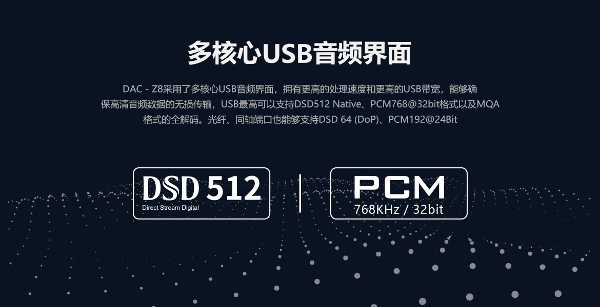 最高支持DSD512 Native、PCM768Hz@32Bit解码