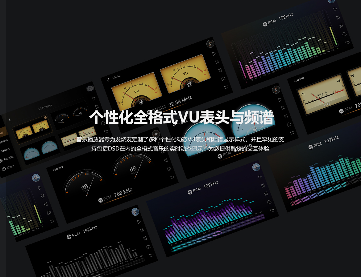 支持全格式(包括DSD格式)动态VU表头显示,丰富的样式选择