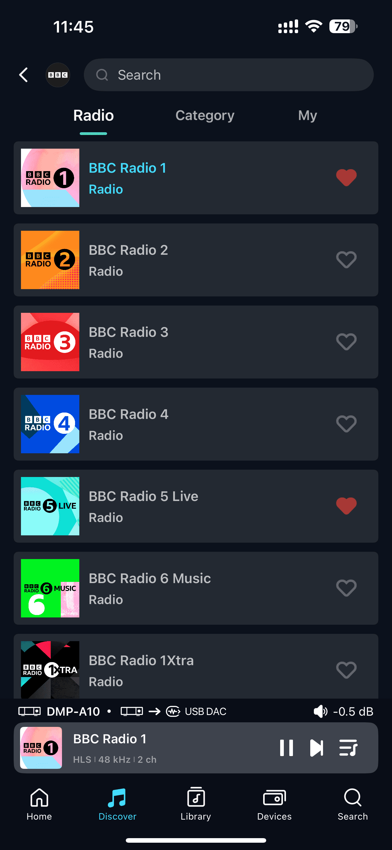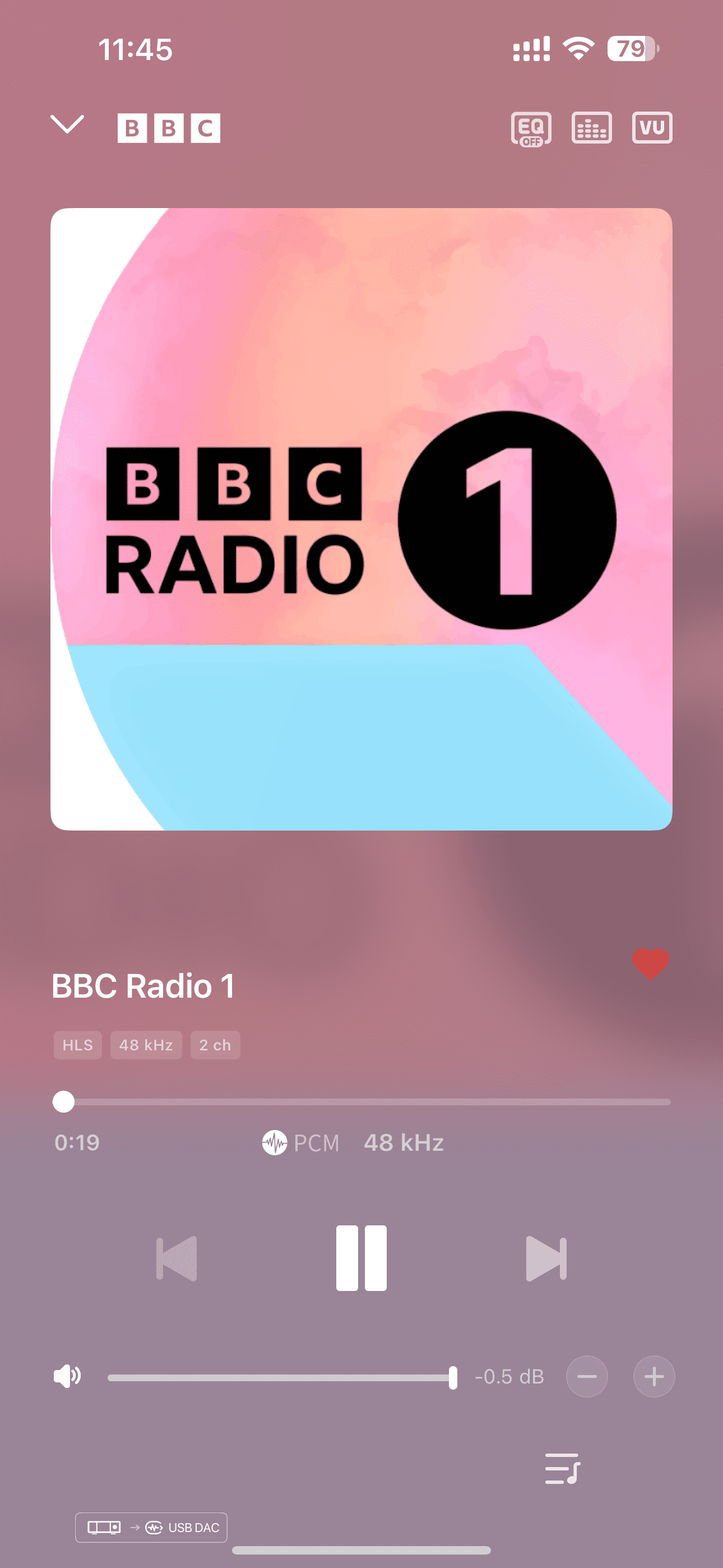 When using the BBC Radio service, the device will output directly according to the current audio source specifications.The actual audio quality depends on the original audio quality provided by the BBC Radio platform.