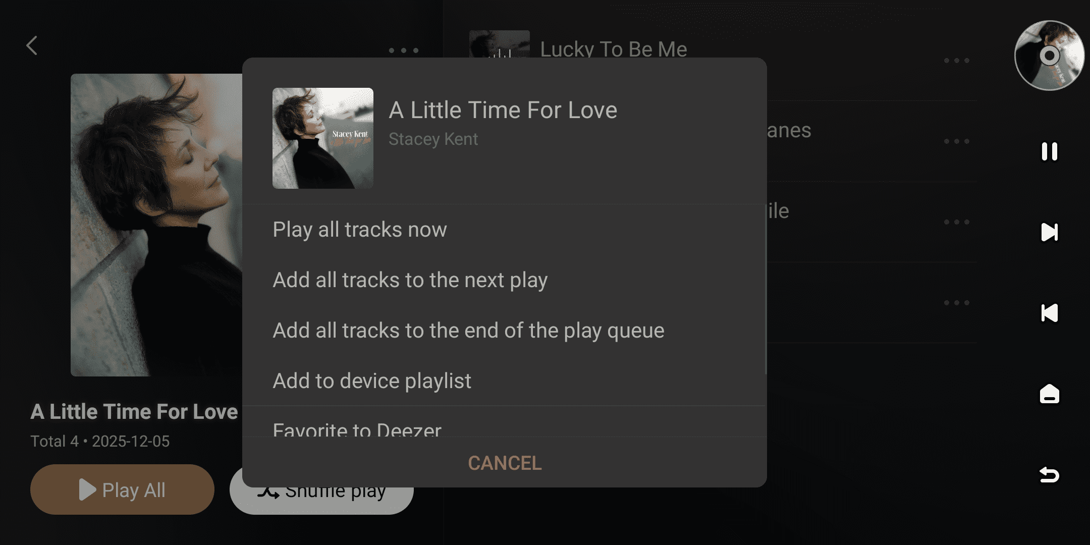 | Favorite to Deezer | Add to device playlist |