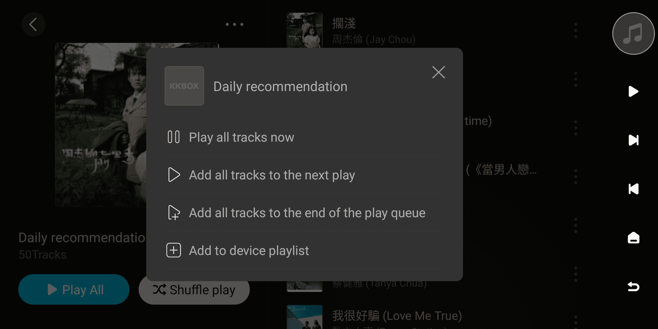 Click the search box at the top to search the entire KKBOX music library for tracks, albums, playlists, artists, and other content you want, quickly locating your desired music resources.