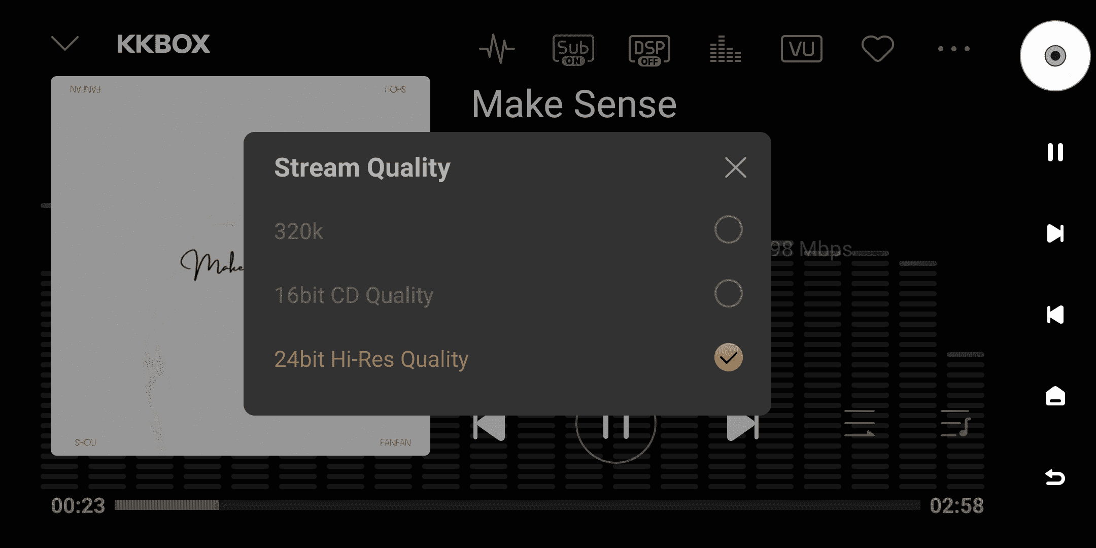 Note: Not all songs support 24-bit Hi-Res; the actual usable stream quality depends on the original file quality of the music.