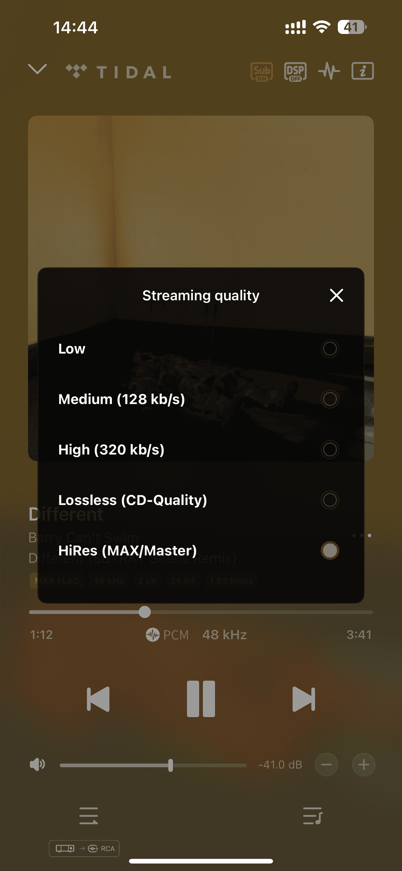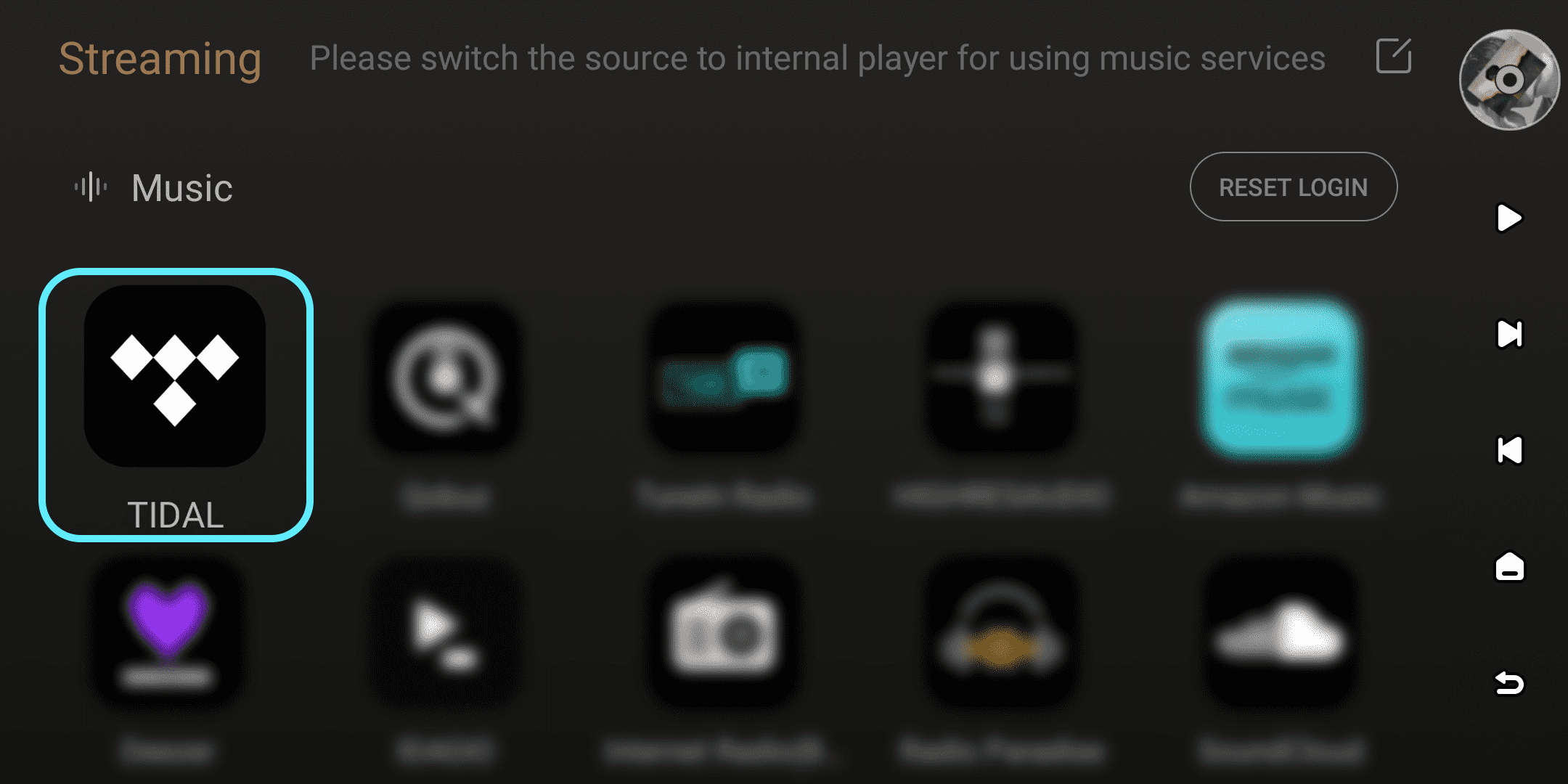 When using the TIDAL music service, you can select the streraming quality mode by clicking the "