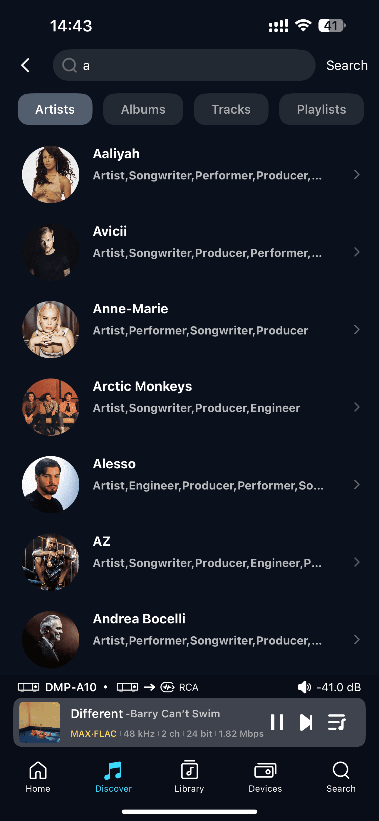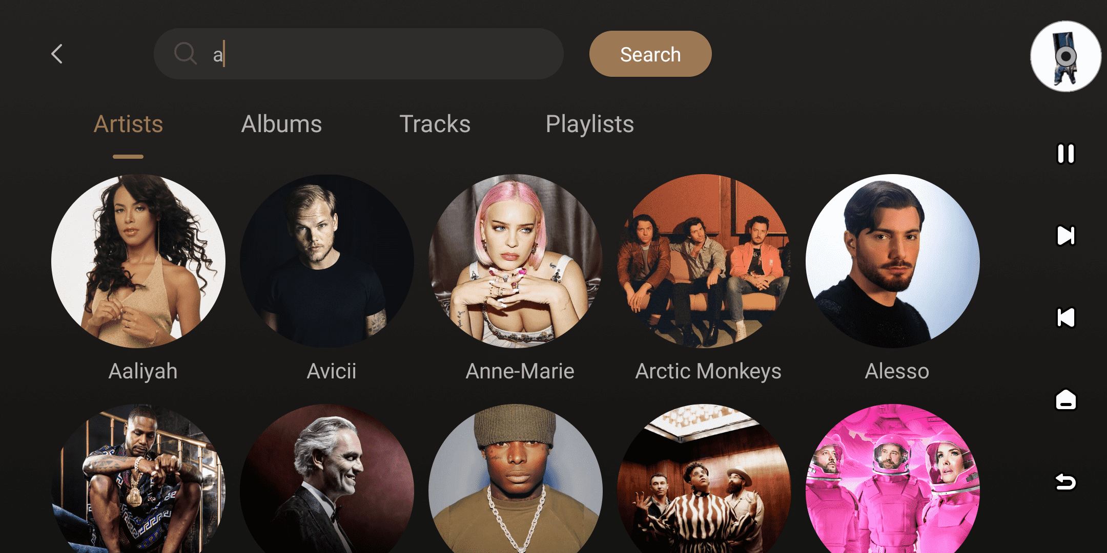 Click the search box at the top to search the entire TIDAL music library, finding Artists, Albums,Tracks, Playlists, and more to quickly locate your desired music resources.