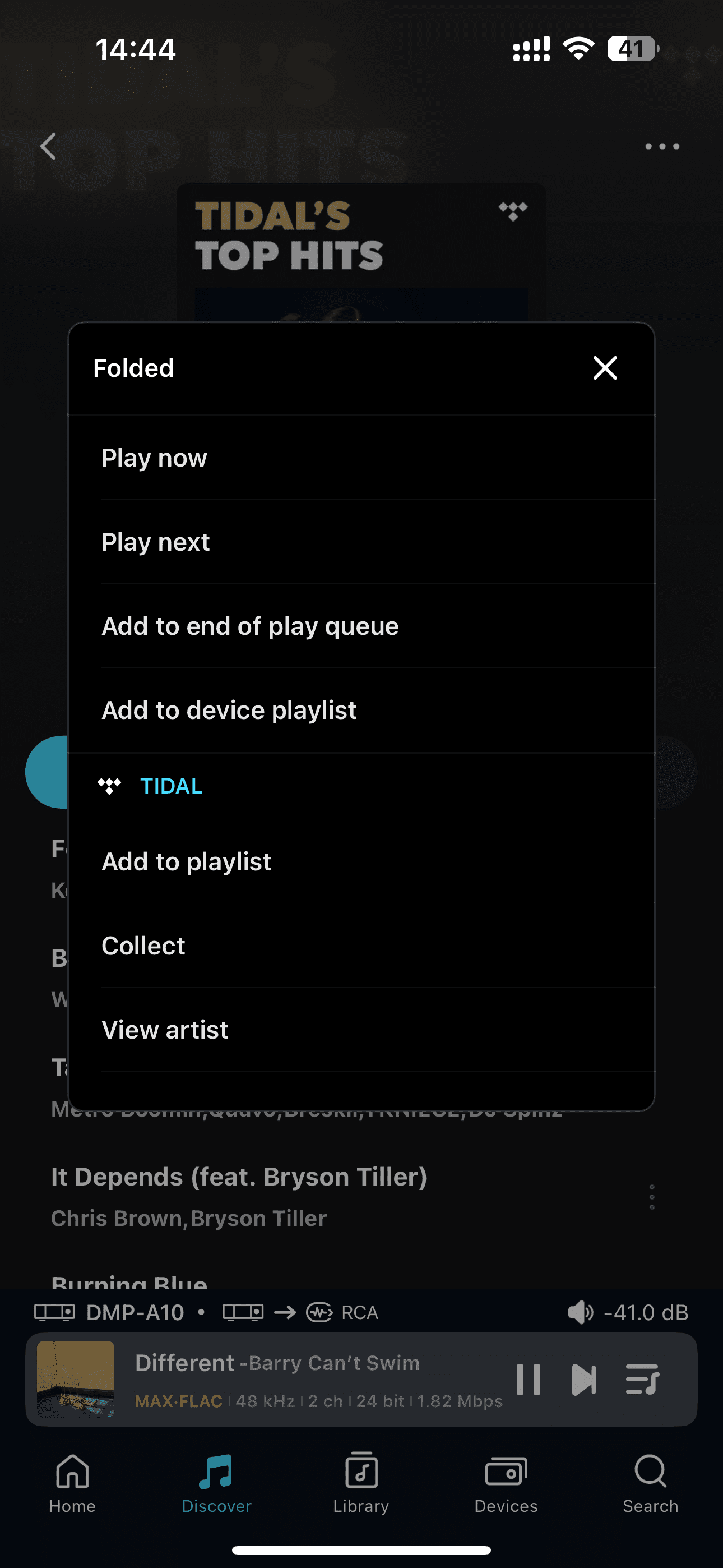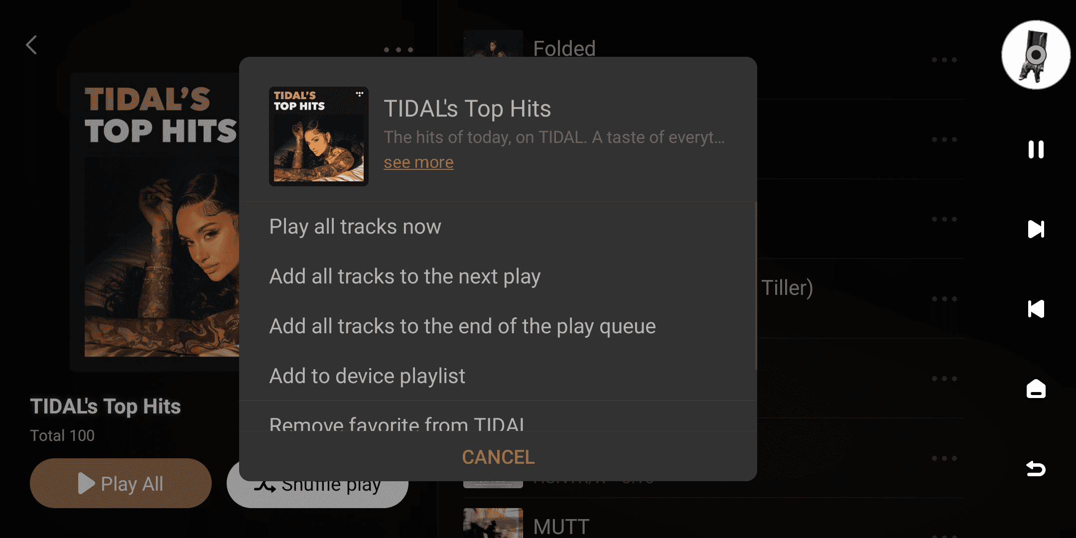 | Add to TIDAL playlist | Favorite to TIDAL |