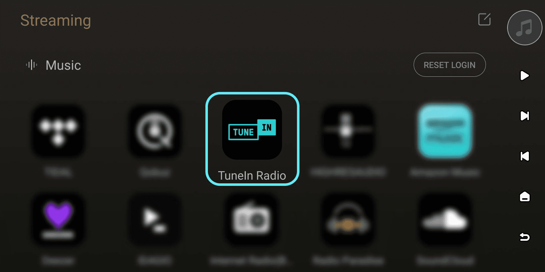 For first-time login, open TuneIn Radio on your device under "Streaming" - "Music", or open it in the Eversolo Control app under "Discover" - "Music Services". Follow the on-screen prompts to complete login.