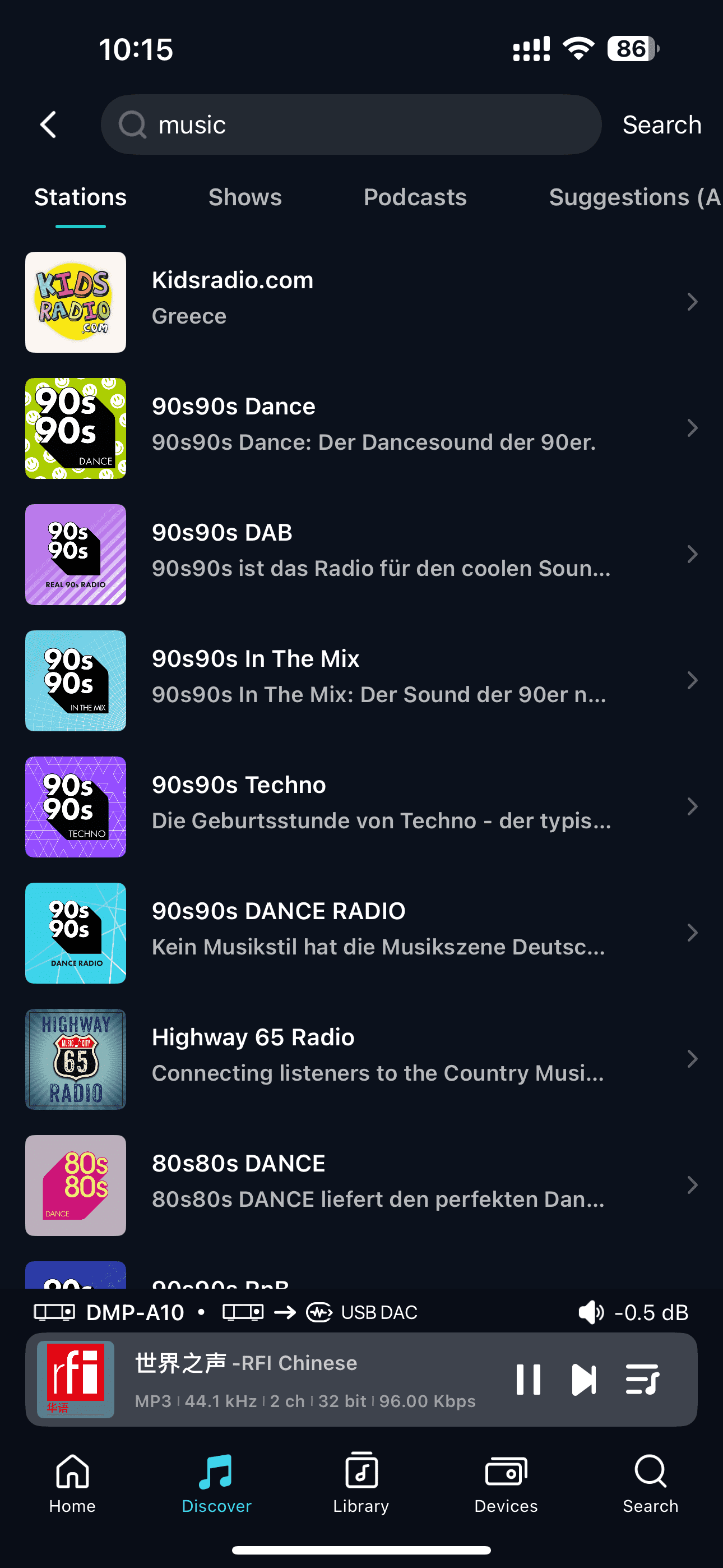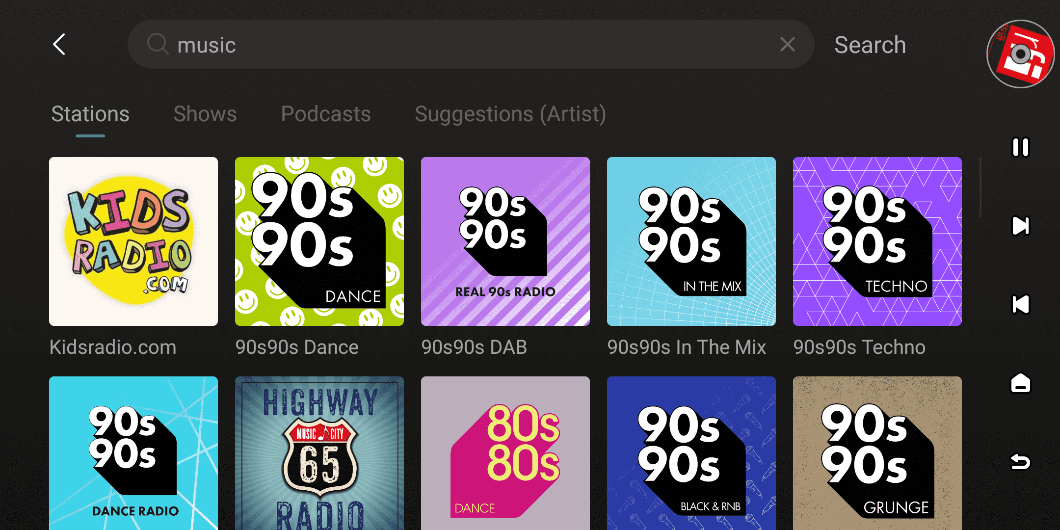 Click the search box at the top to search the entire TuneIn Radio library for Stations,Shows, Podcasts, and Suggestions(Artist), helping you quickly find your desired content.